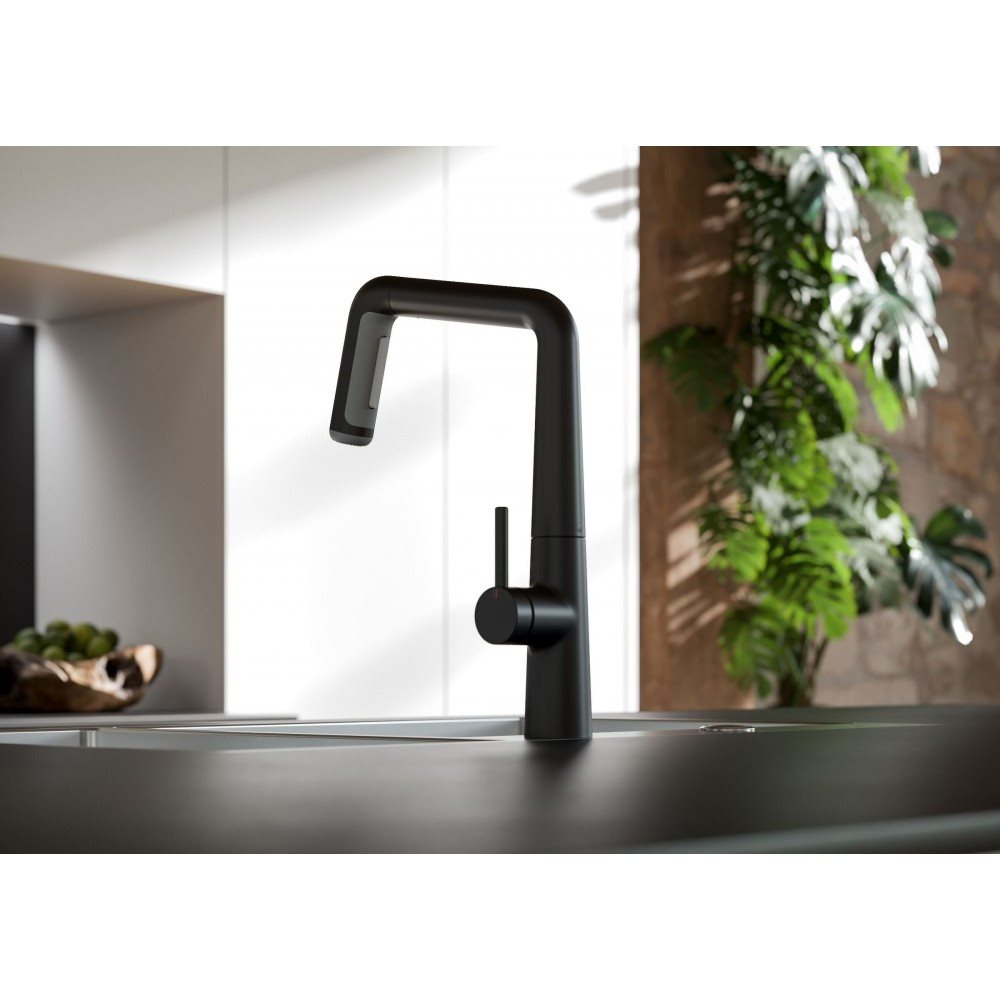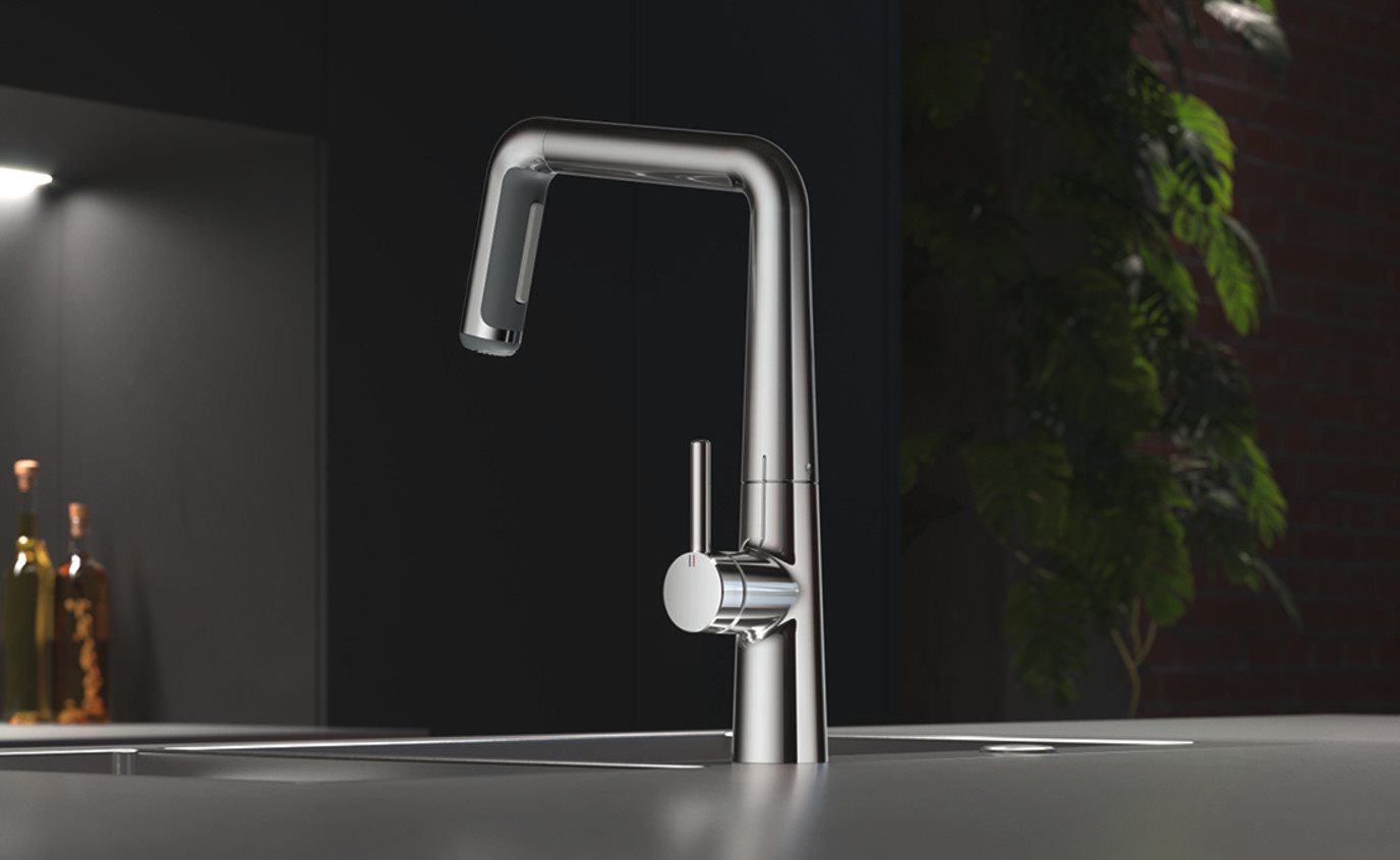 Den schweiziske armaturproducent KWC, har med KIO skabt en skulpturel serie af køkkenvandhaner, som skiller sig ud fra mængden. Det futuristiske og kegleformet design er både æstetisk og enkelt. Et-grebsbetjeningen sikre optimal styring.