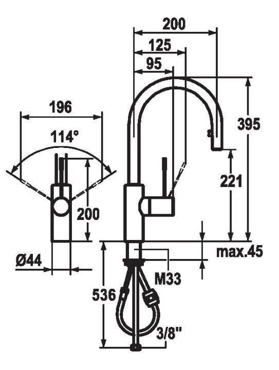 Udtræksfunktionen giver ekstra fleksibilitet og kontrol i køkkenarbejdet, så man nemt kan skylle grøntsager, fylde gryder eller rengøre vasken med præcision og komfort. Udtrækket er ergonomisk designet og let at håndtere, hvilket gør daglige opgaver mere effektive og strømlinede.