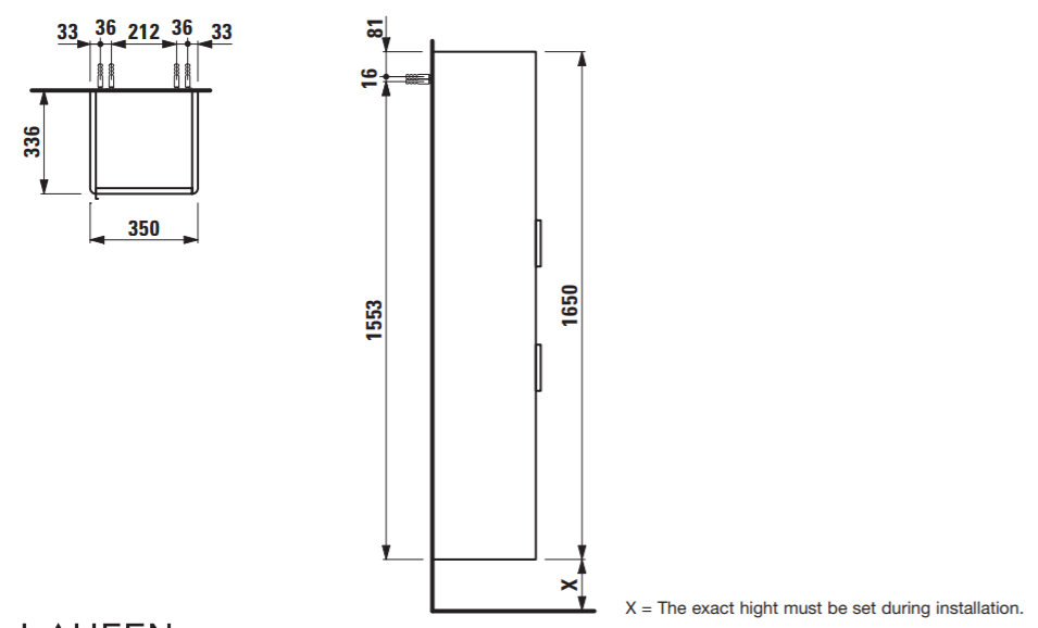 Laufen Base højskab 165 cm 2 højrehængt låger med greb & 1 skuffe. Hvid