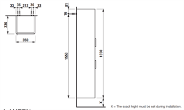 Laufen base højskab 165cm højre hængt 2 låger + 1 skuffe. Hvid