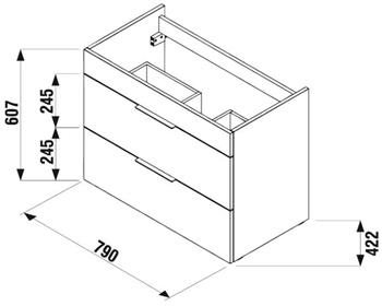 Underskabet leveres samlet med 2 skuffer og sorte greb. Skufferne har softclose. Møbelpakken måler 80 x 43 cm og er udført i en rengøringsvenlig, mathvid overflade.