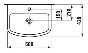 Laufen Kompas håndvask 560 x 420 mm til montering på væg med buet forkant.