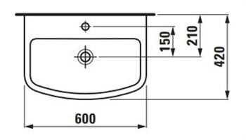 Laufen Kompas håndvask 600 x 420 mm til montering på væg med buet forkant.