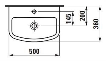 Laufen Kompas håndvask 500 x 360 mm til montering på væg med buet forkant.