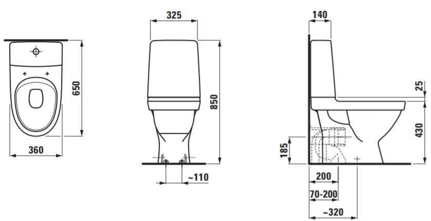 Laufen Kompas gulvstående toilet med P-lås, rimless og LCC overflade - til limning