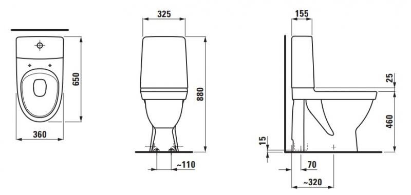 Laufen Kompas toilet S-lås, høj siddehøjde 46 cm, rimless med LCC