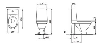 Det gulvstående toilet er udstyret med S-Lås, hvilket vil sige, at afløbet går lodret ned i gulvet. Det er den mest udbredte installationsform i Danmark. Monteringen i gulvet sker med skruer, som naturligvis medfølger.