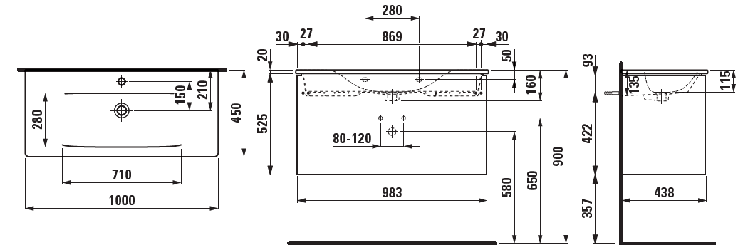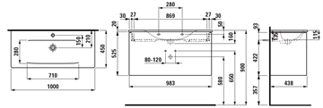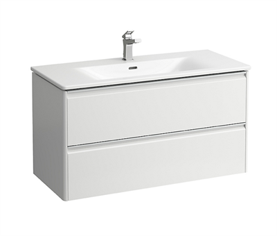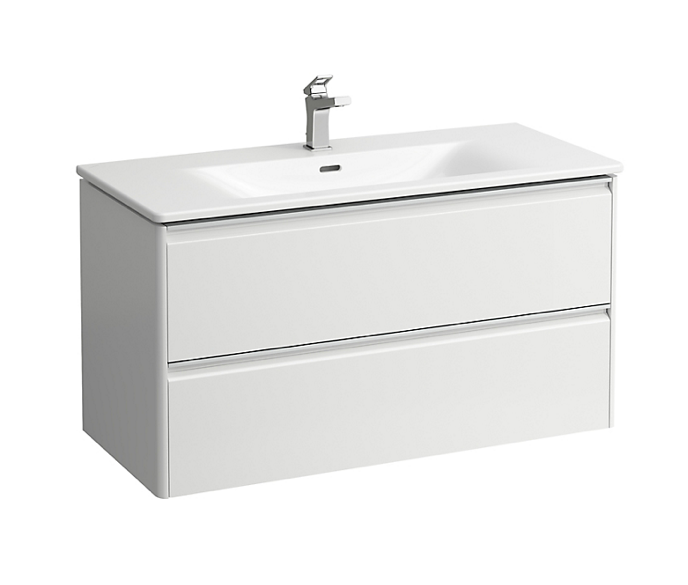 Laufen Palace møbelpakke 100cm med 2 skuffer med gennemgående, integreret, alugreb i toppen af skuffen.