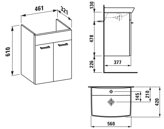 LAUFEN PRO N møbelpakke 560x420x674mm 2 låger mat hvid