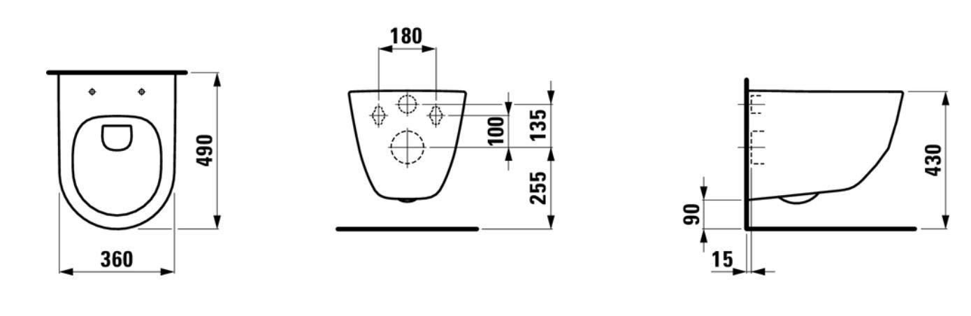 Toiletter fra Laufen med åben skylle-rand (Rimless) betyder, at skyllekanten er fjernet, så skidt og snavs ikke længere kan gennem sig under denne. Dette øger rengøringsvenligheden væsentlig.