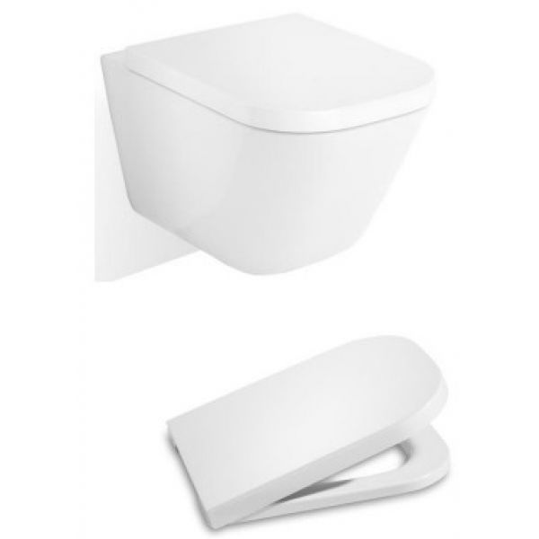 Denne Roca Gap toiletpakke består af hængeskål og toiletsæde med softclose funktion. Hængetoiletskål og sæde passer til indbygningscisterne og bolteafstanden er 180mm.