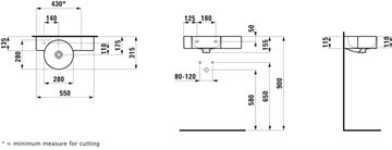 Laufen VAL håndvask 55x31,5 cm med hanehul og hylde til højre, Hvid