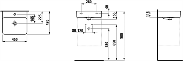 LAUFEN VAL håndvask på 45x42 CM med LCC & slebet underkant
