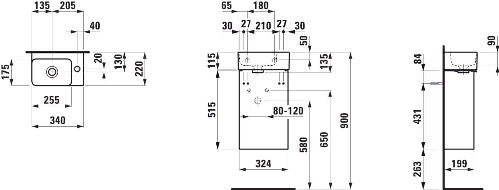 Laufen Val møbelpakke 34 x 22 cm med låge og hanehul til højre, hvid