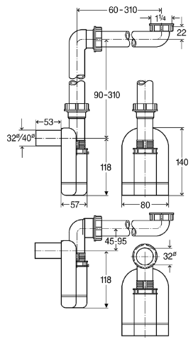 Laufen Vandlås pladsbesparende til horisontal afløb i væg. 1 1/4\'\'