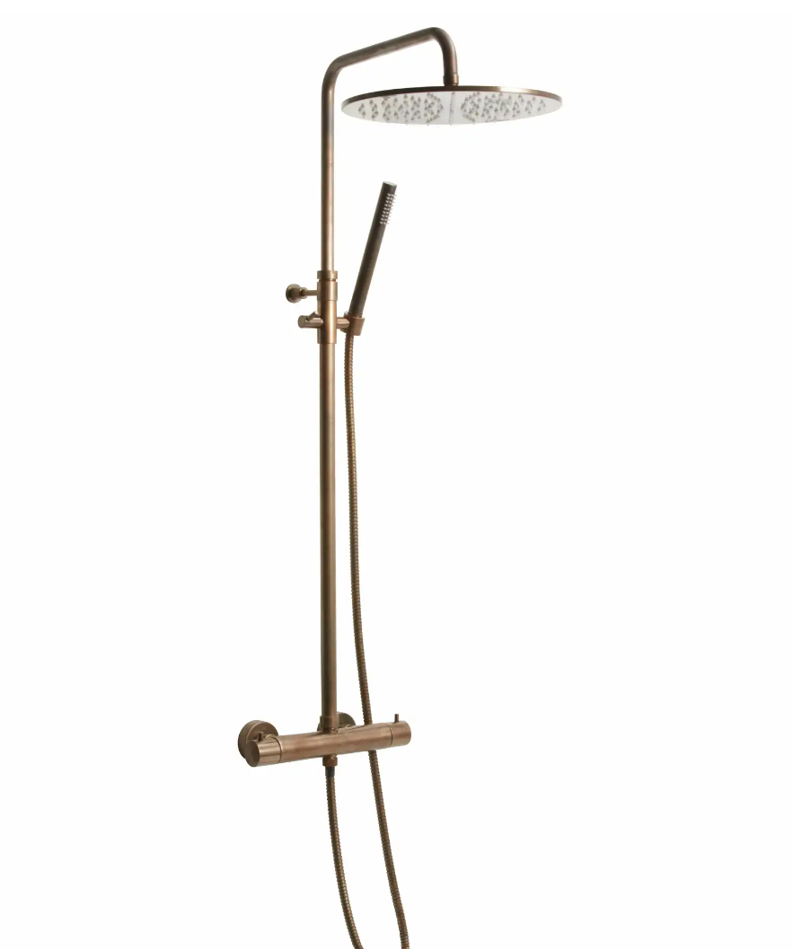 LAVABO Argo komplet brusesystem med termostat samt stor hoved- & slank håndbruser, Bruneret Natur messing, art.nr. 53044BR