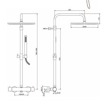 Det store brusehoved på Ø300mm er din garant for en skøn bruseoplevelse. Designet er stilrent og karakteriseret ved en slank håndbruser i fast position som kan vippe frem og tilbage. Både hovedbruser og håndbruser er udstyret med gummidyser, der sikrer let rengøring mod kalkdannelse ved at blot at gnubbe fingrene henover dyserne.