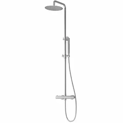 LAVABO Argo RS komplet brusesystem med termostat samt stor slim hoved- & slank håndbruser, børstet rustfrit stål