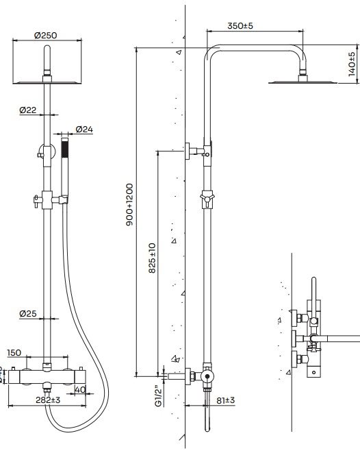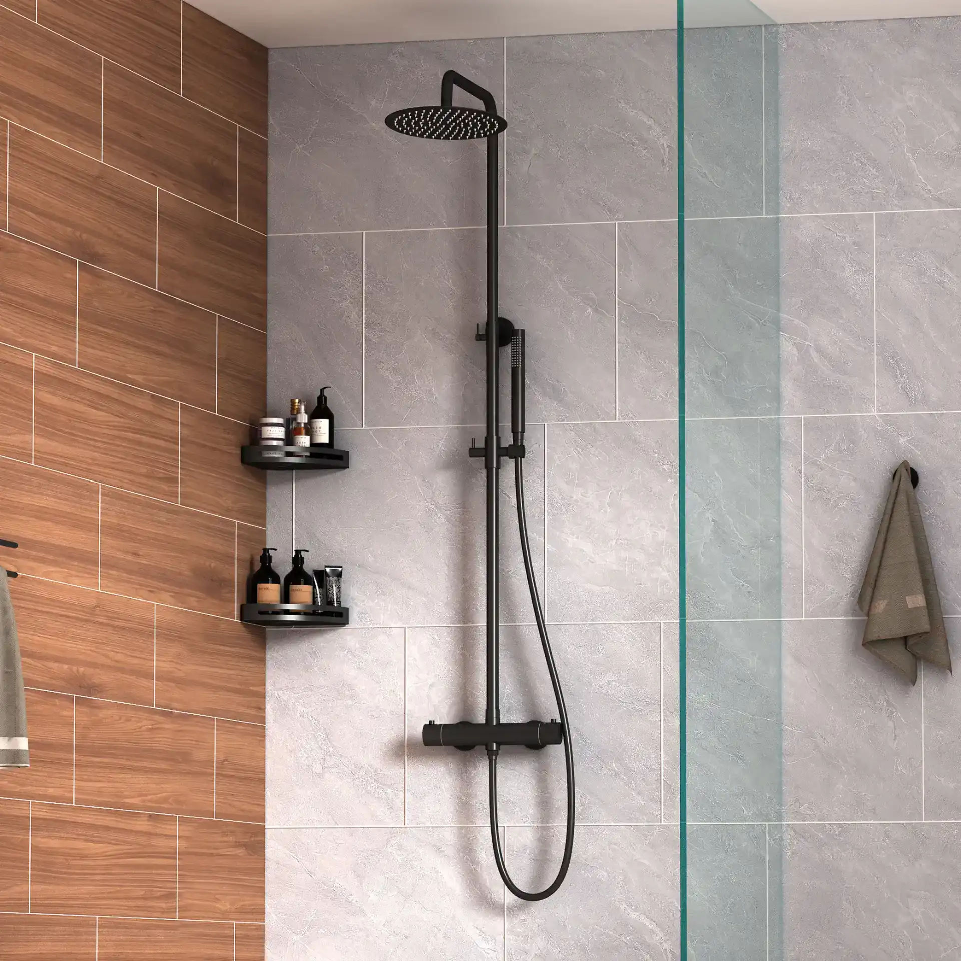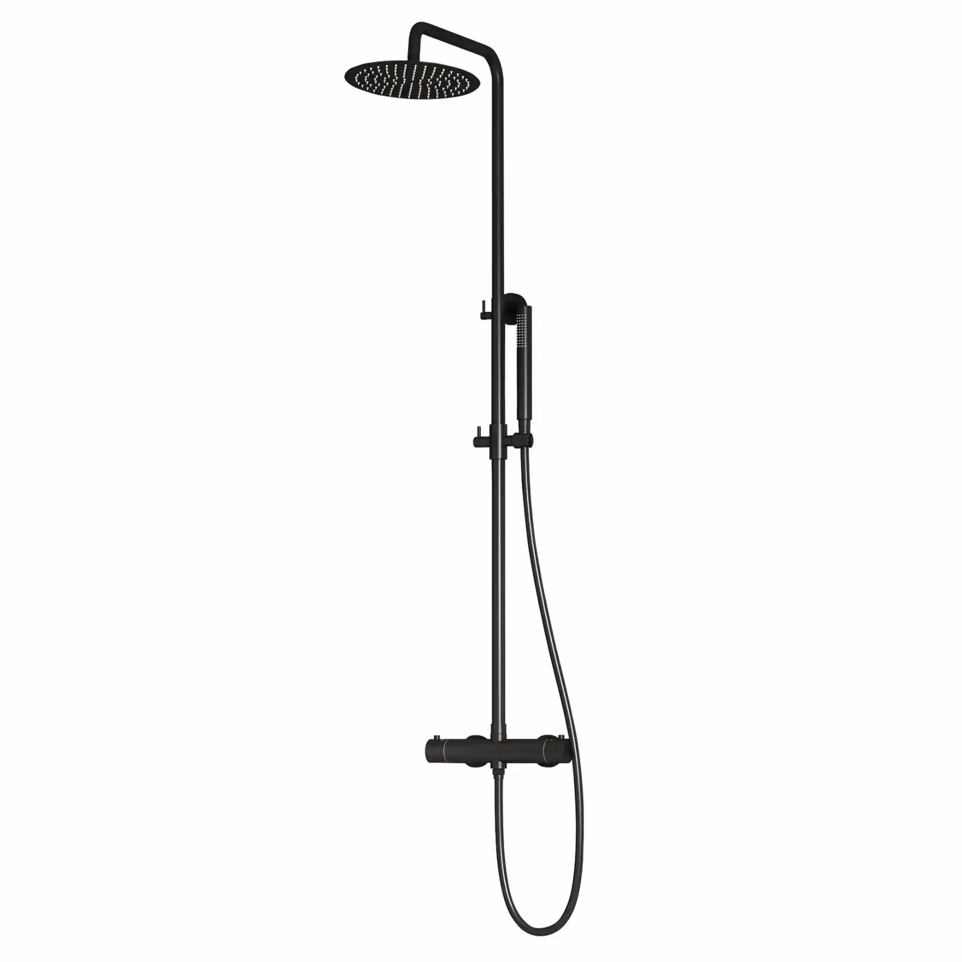 LAVABO Argo RS komplet brusesystem med termostat samt stor slim hoved- & slank håndbruser, mat sort