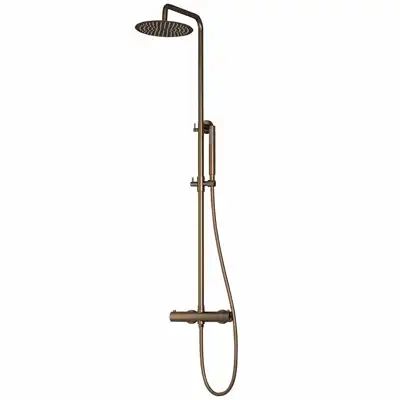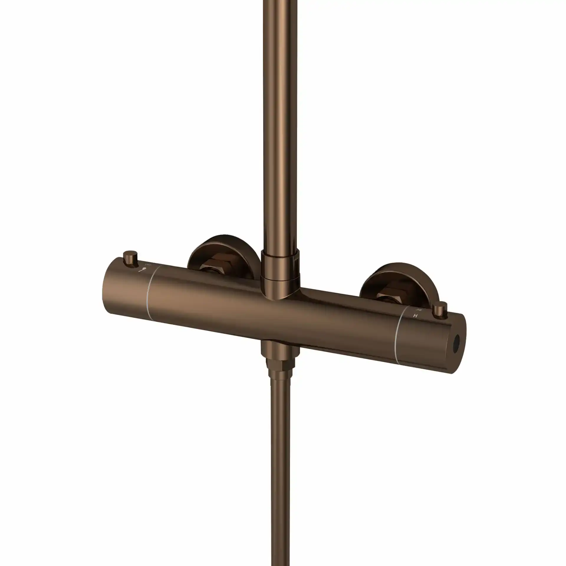 LAVABO Argo RS komplet brusesystem med termostat samt stor slim hoved- & slank håndbruser, kobber