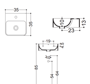 Lavabo Axa 1020 Håndvask 35x35,5x13 cm med Hanehul og overløb