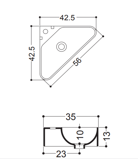 Lavabo AXA hjørnevasken har et chik og stilfuldt trekantet design, som elegant er opblødt med afrundede hjørner. Vasken er til placering ovenpå en bordplade eller til ophæng på væggen