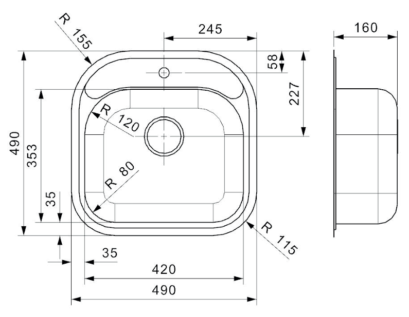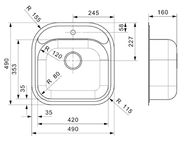 Lavabo Boston L køkkenvask - Rustfrit stål - 420 x 353 x 160 mm
