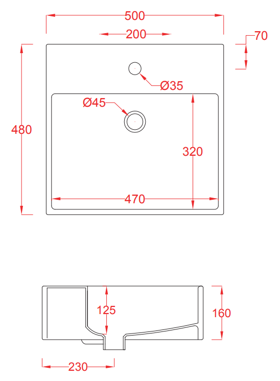 Lavabo Boxo 1010 SLIM 500 x 480 mm - Elegant vask med helt tynde sider i italiensk design.
