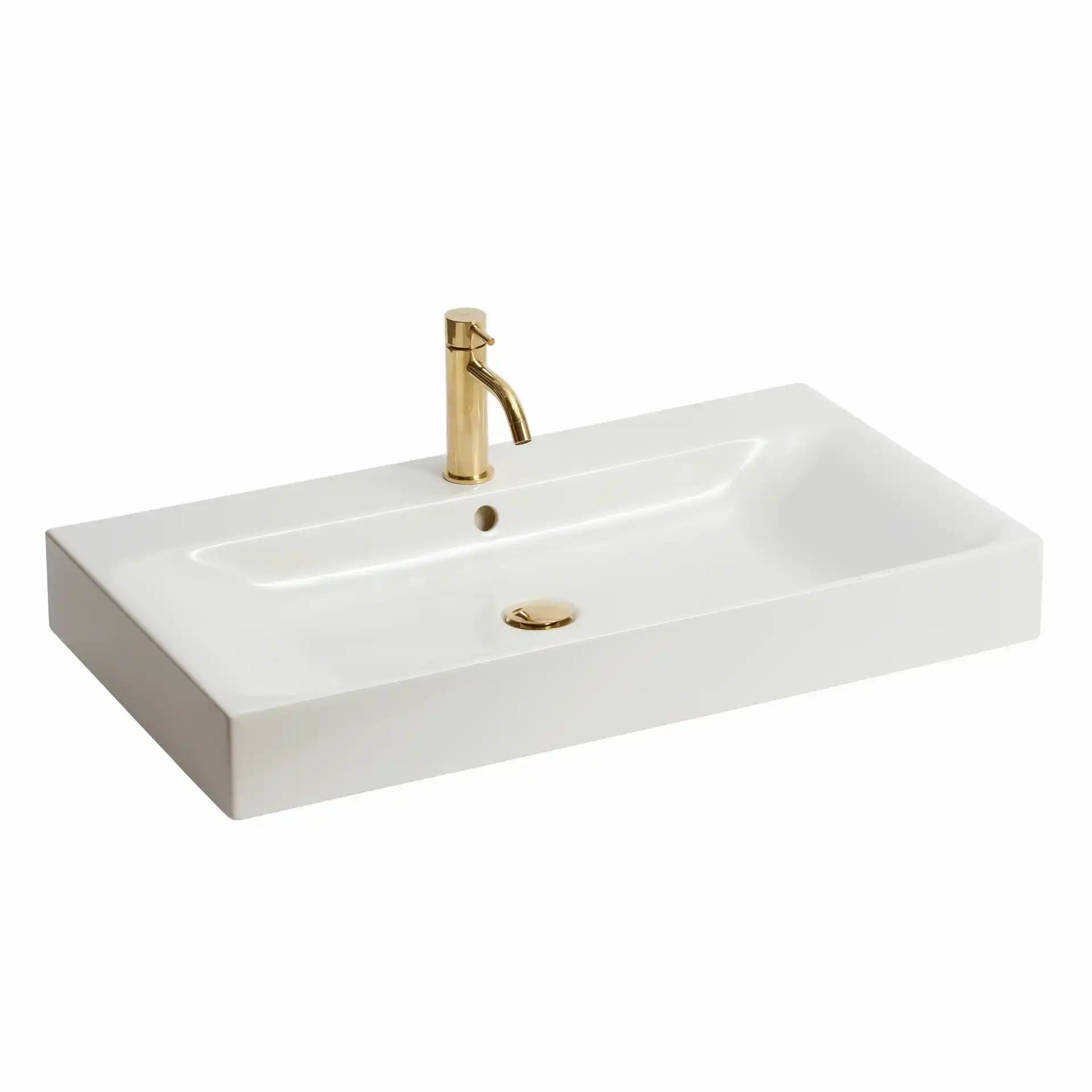 Lavabo Cento porcelænsvask er en elegant og funktionel løsning til badeværelset, designet med fokus på både æstetik og holdbarhed. Vasken kan monteres enten på bordplade eller direkte på væggen, hvilket gør den yderst fleksibel i forhold til forskellige badeværelsesindretninger.