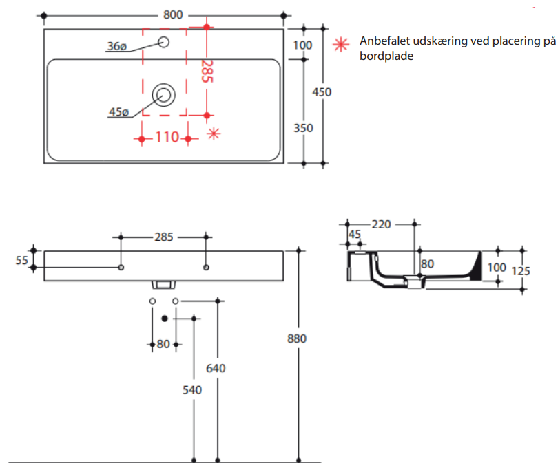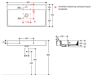 Monteringsmuligheder: (vask) På bord, Væghængt