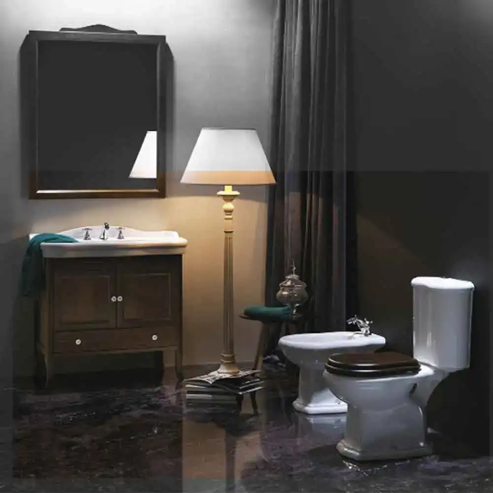 Giv dit badeværelse et elegant og klassisk udtryk med Lavabo Contea Retro – et gulvstående toilet designet i ægte retrostil, hvor kvalitet og nostalgi mødes.