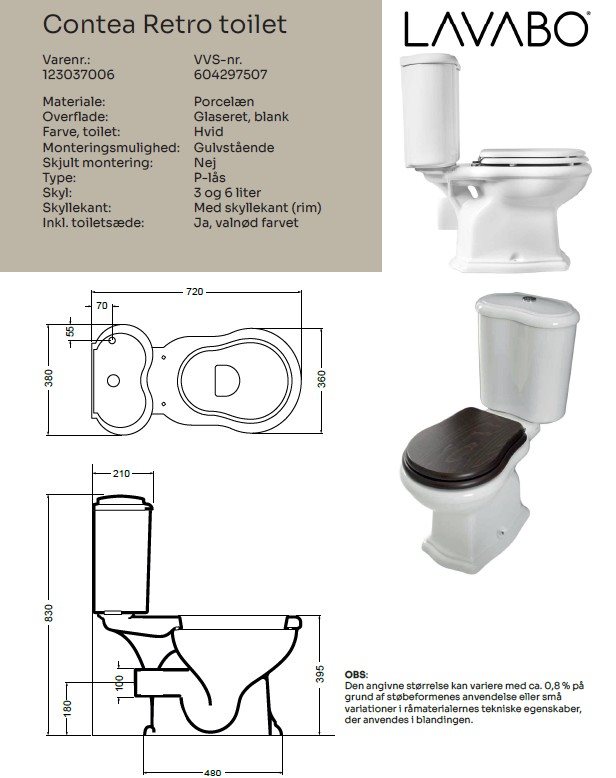 Lavabo Contea Retro gulvstående toilet med P-lås og Retro toiletsæde – Valnød