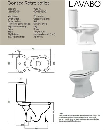 Lavabo Contea Retro gulvstående toilet med S-lås og hvidt Retro toiletsæde