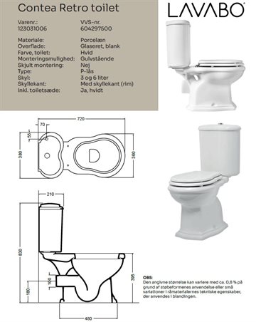 Lavabo Contea Retro gulvstående toilet med P-lås og hvidt Retro toiletsæde