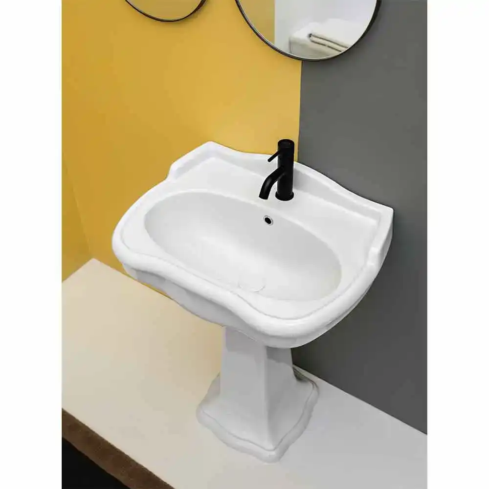 Lavabo Contea Retro håndvask 64 med hanehul, overløb og piedestal