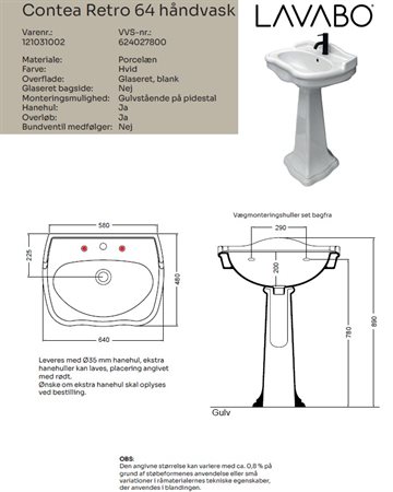 Lavabo Contea Retro håndvask 64 m/piedestal