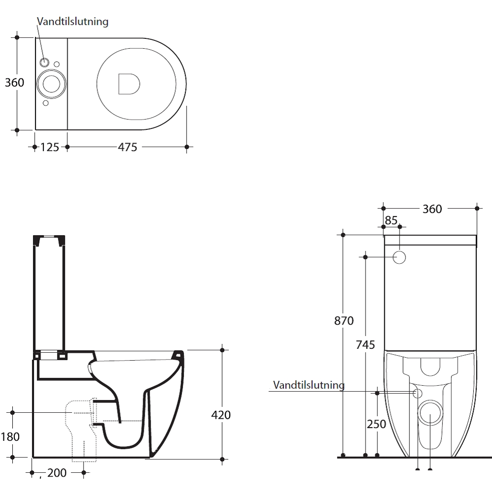 Toilettets total dybde er 60 cm, og er blandt de korteste på markedet