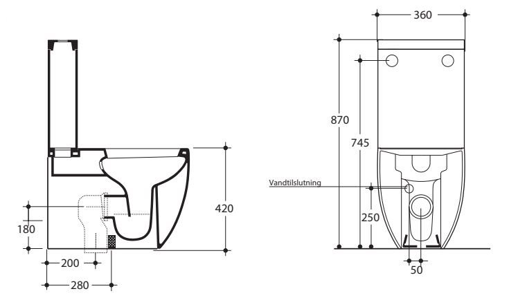 Toilettet er et Back To Wall, hvilket betyder, at det kan monteres helt op mod væggen, men kan også trækkes op til ca. 10 frem fra væggen.