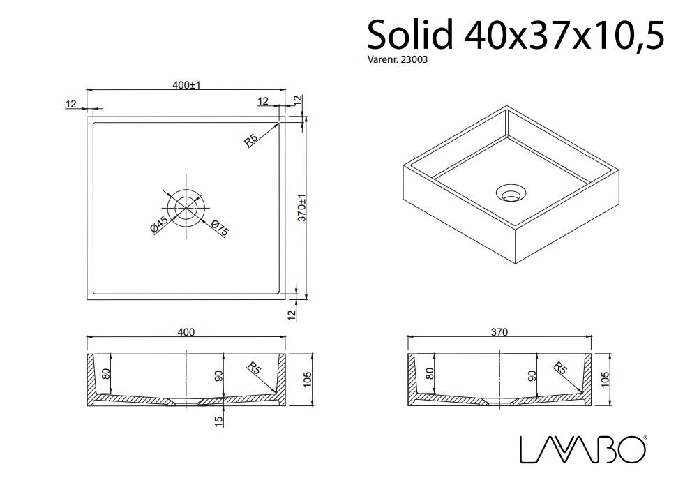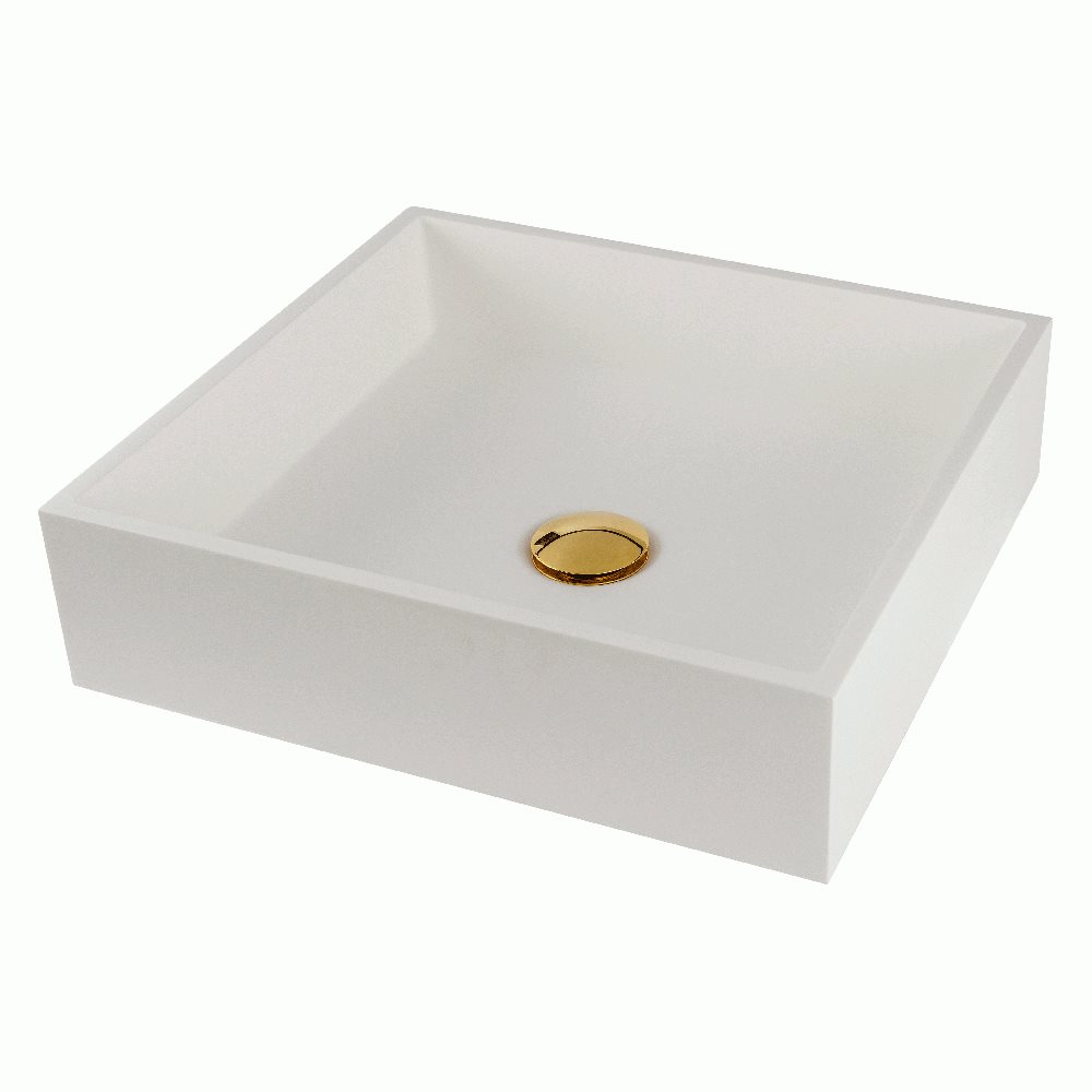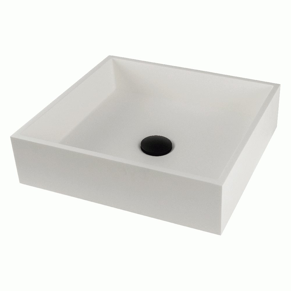 En flot håndvask klassisk skandinavisk design. Den firkantede Solid surface badeværelsesvask placeres ovenpå bordplade eller møbel, hvor servantevasken fremstår elegant i sit tidløse design.