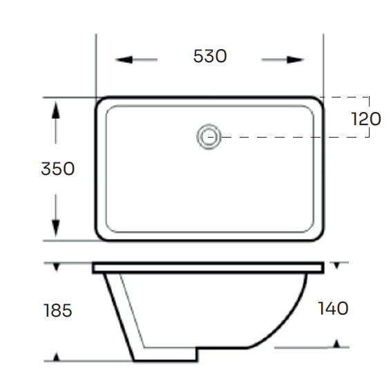 OBS: Vasken er håndlavet og der vil derfor kunne forekomme tolerancer på målene. Udskæring skal derfor altid foretages med udgangspunkt i den leverede vask.