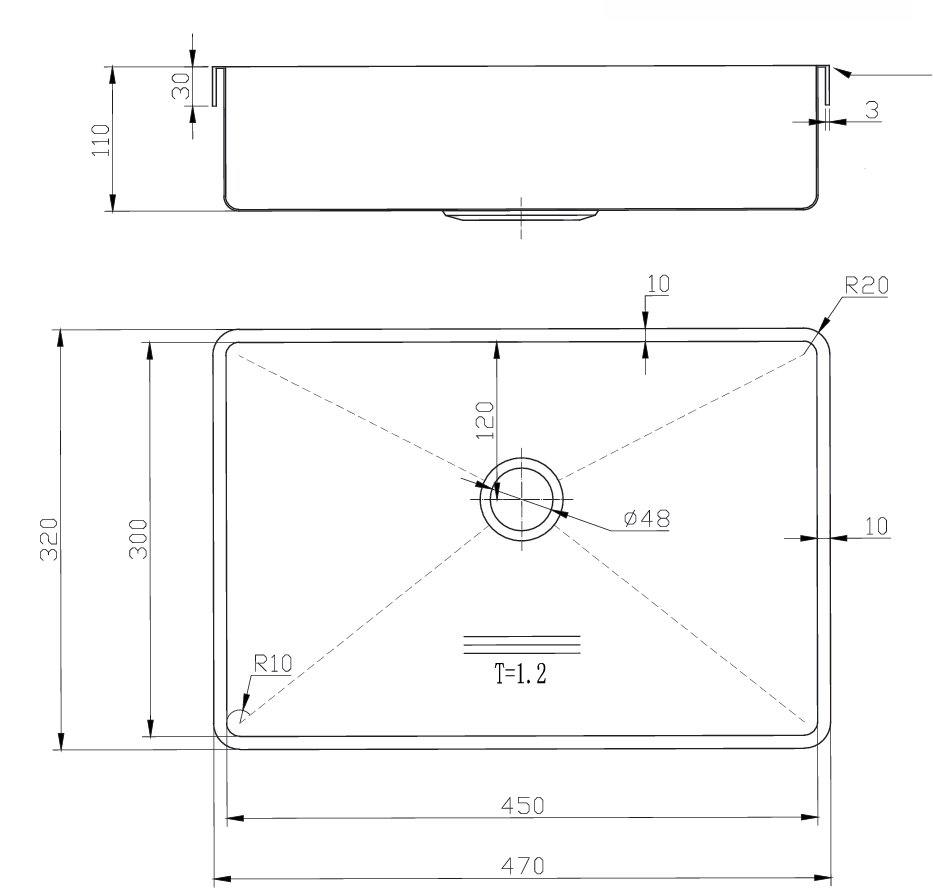 De indvendige runde hjørner følger vaskens yderkant, hvilket giver et harmonisk design, ligeledes er de indvendige runde hjørner rengøringsvenlige.