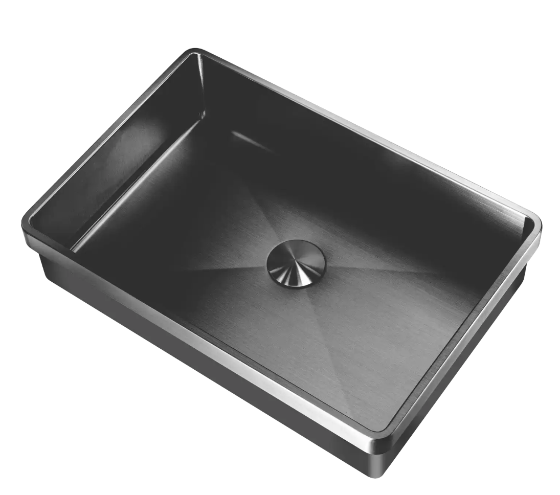 De indvendige runde hjørner følger vaskens yderkant, hvilket giver et harmonisk design, ligeledes er de indvendige runde hjørner rengøringsvenlige.