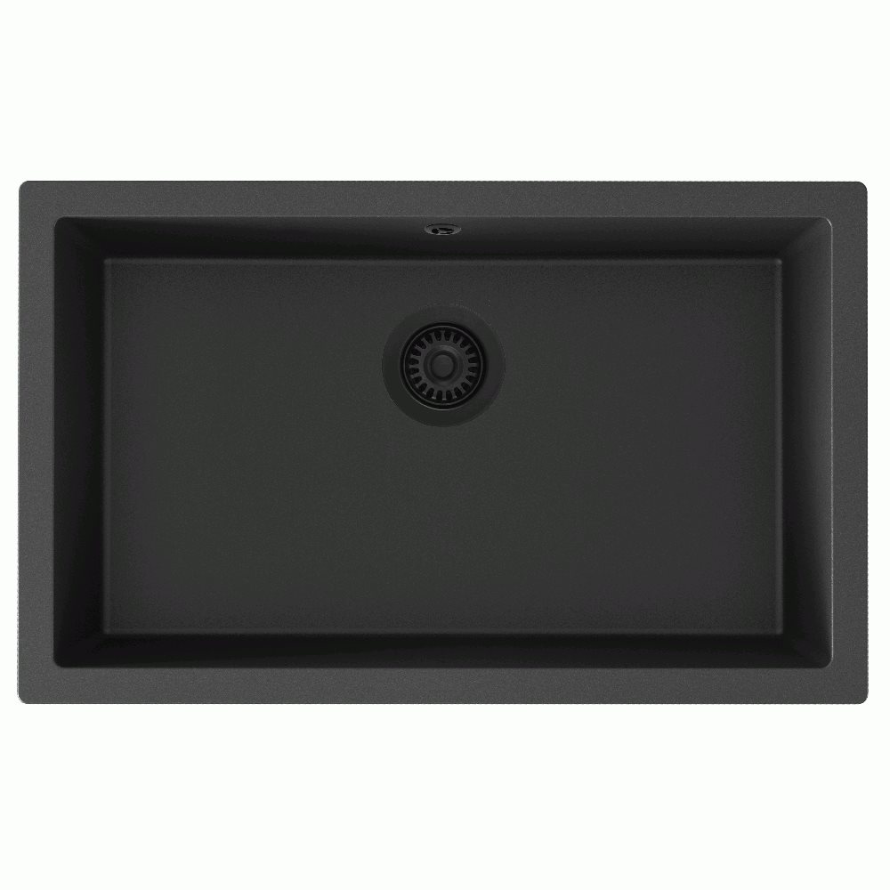 Lavabo Jupiter 800 Køkkenvask uden hanehul i sort komposit materiale og med sort strainer. En cool og stilfuld køkkenvask i eksklusivt italiensk design.