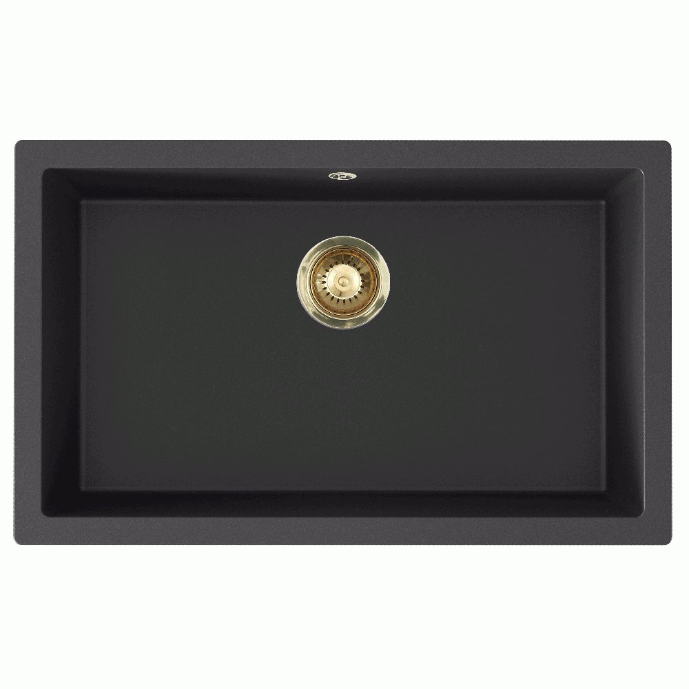 Lavabo Jupiter 800 Køkkenvask uden hanehul i sort komposit materiale og med messing PVD strainer. En cool og stilfuld køkkenvask i eksklusivt italiensk design.