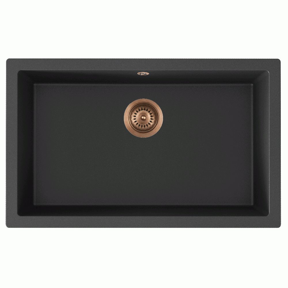Lavabo Jupiter 800 Køkkenvask uden hanehul i sort komposit materiale og med kobber PVD strainer. En cool og stilfuld køkkenvask i eksklusivt italiensk design.