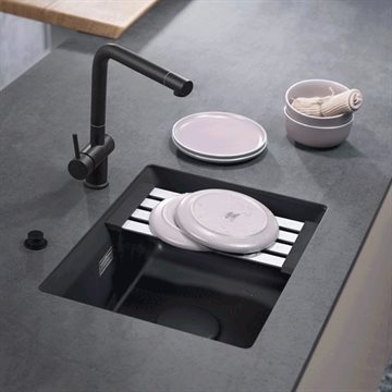 Lavabo Kara 50 U Køkkenvask i matsort keramik med krom kurveventil til underlimning