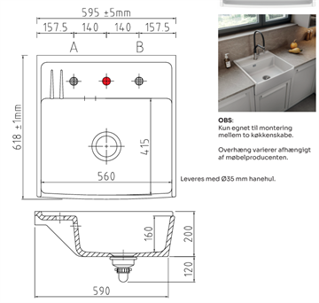 Bemærk dog: Vasken er modsandsdygtig over for ridser, dog vil gryder og service kunne give brugsspor i vasken.