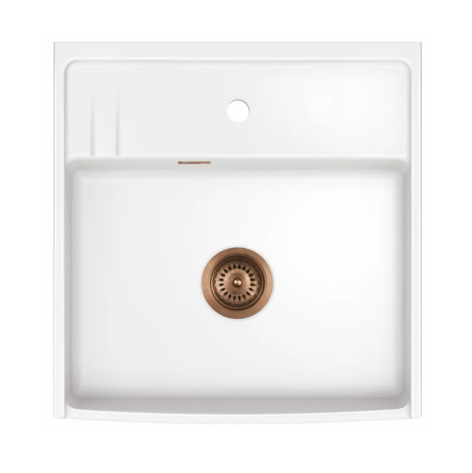 Lavabo Kentro 60 køkkenvask 595 x 618mm i hvid porcelæn til modul med PVD kobber bundventil, art.nr. 11351K