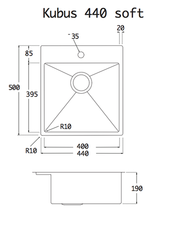 Lavabo Kubus 440 soft køkkenvask 440 x 500mm i rustfrit stål