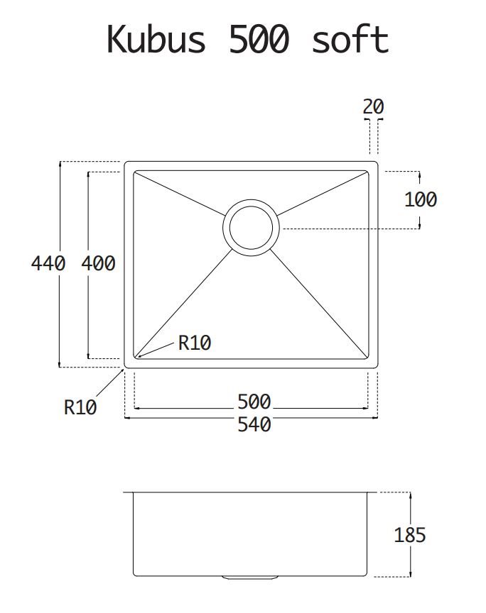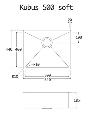 De afrundede hjørner (R10) giver et moderne og harmonisk udtryk, men gør samtidig vasken mere rengøringsvenligt og hygiejnisk, da det minimere ophobning af snavs.